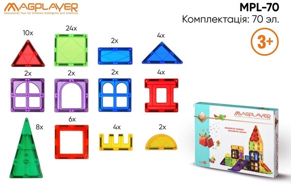 Конструктор Magplayer магнитные плитки 70 элементов (MPL-70)