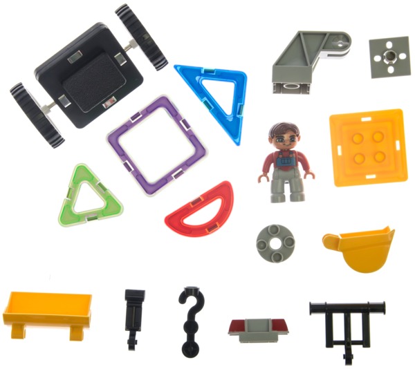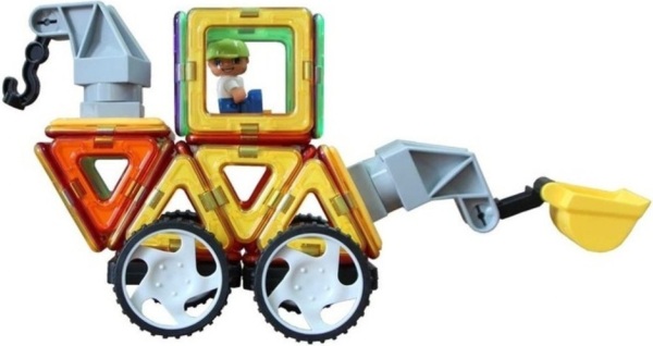 Детский магнитный конструктор MagPlayer состоит из 64 ярких частей в форме некоторых геометрических фигур: треугольников, квадратов и тому подобное. Также в набор входят различные детали, с помощью которых можно создать собственный экскаватор или множество других фигур. Части конструктора отличаются надежной фиксацией между собой. Инструкция, входящая в упаковку, содержит схему, которая позволит ребенку создать уникальные конструкции.
