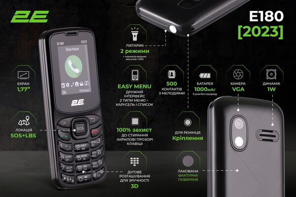 - Мобильный телефон 2E E180 2023 Black (688130251044)