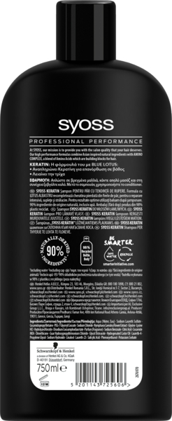 Шампунь Syoss Keratin для ломких волос с голубым лотосом 750 мл