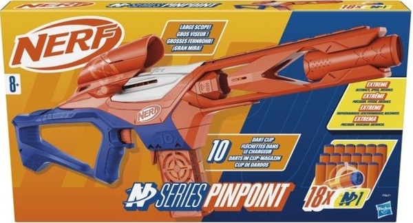 Nerf N Series Pinpoint Blaster - це іграшковий бластер, розроблений для точної стрільби на далекі дистанції. Він комплектується 18-ма ексклюзивними стрілами Nerf N1, які забезпечують екстремальну точність, швидкість і дальність.