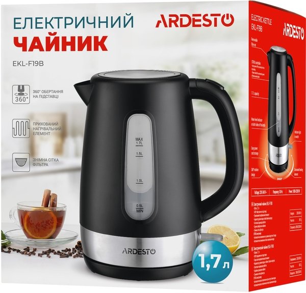 Електрочайник Ardesto EKL-F19B мене влаштовує, обирали серед виробників, з якими стикалися особисто. Зручно було, що відразу дозамовили і набір чашок Ardesto з подвійними стінками на 300 мл. Тепер вдома проводимо свої чайні церемонії. Що стосується самої якості – вона чудова. Так як нагрівальний елемент – прихований, зручно мити. В дизайні нічого зайвого, строгий чорний колір вписався в інтер’єр кухні. А з шкалою рівня води, що на два боки, легко перевіряти наповнення, хоча і присутній контролер, що не дасть ввімкнути пустий прилад.