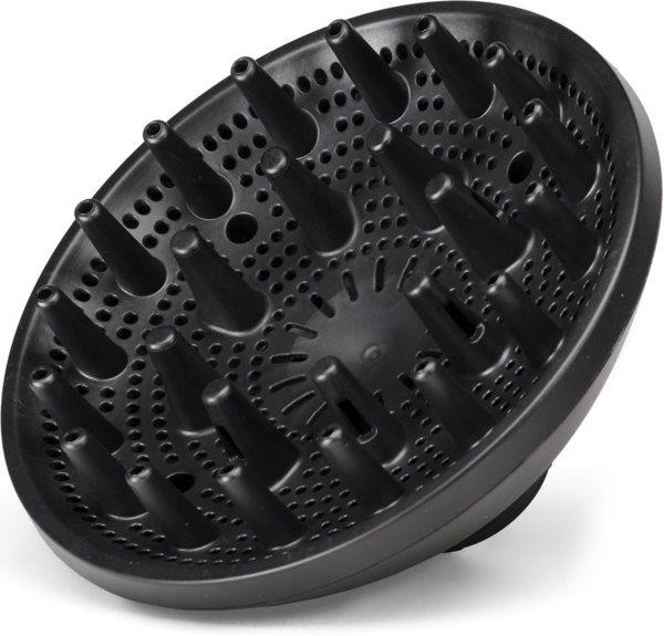 Великий дифузор із системою надійної фіксації забезпечує швидке сушіння хвилястого, кучерявого та кучерявого волосся без розпушування.