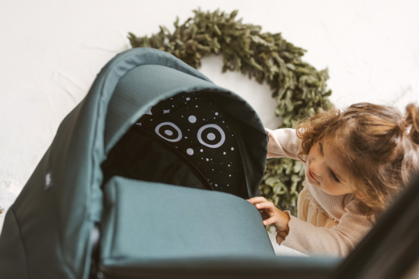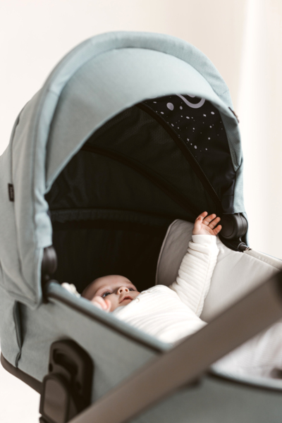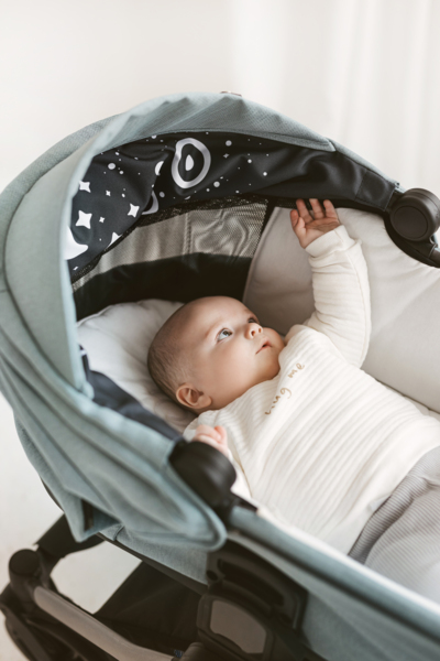Надзвичайно великий капюшон захищає малюка від негоди та сонячних променів, а панорамне сітчасте вікно забезпечує найкращу вентиляцію.