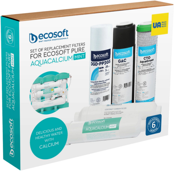 - Комплект картриджів сумісний з фільтрами зворотного осмосу Ecosoft P’URE AquaCalcium.