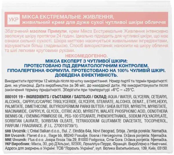 Крем для дуже сухої чутливої шкіри обличчя Mixa Anti-dryness 50мл