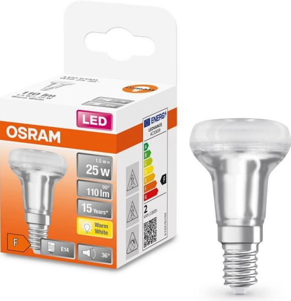 - Лампа Osram Led E14 1.5Вт 2700К 110Лм R39 Star (4058075433243)