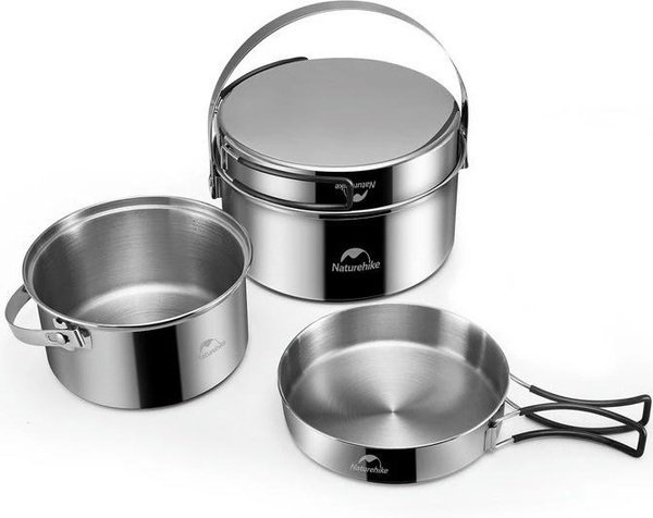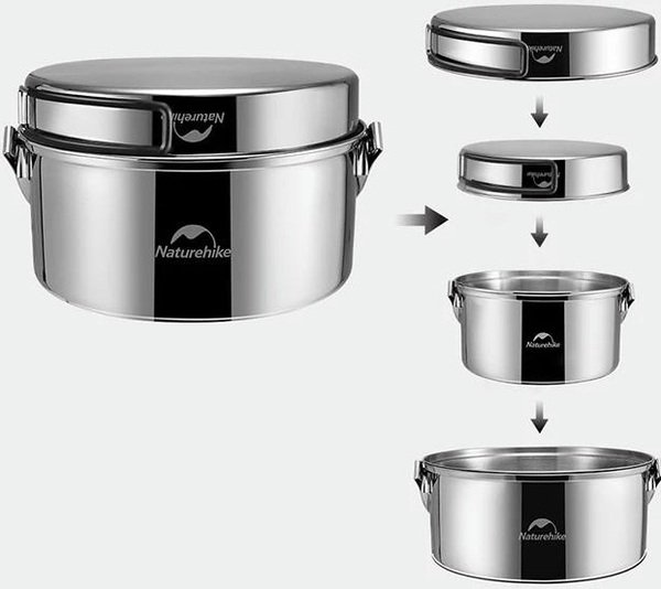 Набір посуду (2 каструлі, казанок, сковорода) Naturehike NH22CJ005, нержавіюча сталь