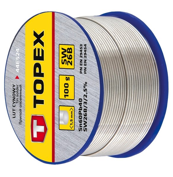 Припій TOPEX олов'яний 60% Sn, дріт 1.5 мм, 100 г