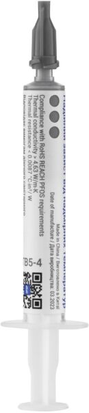 Термопаста 2Е TB5-4 – багатокомпонентна пластична речовина з високою теплопровідністю. Термопаста використовується для зменшення теплового опору між двома дотичними поверхнями, а саме, за рахунок заповнення повітряних зазорів між ними.