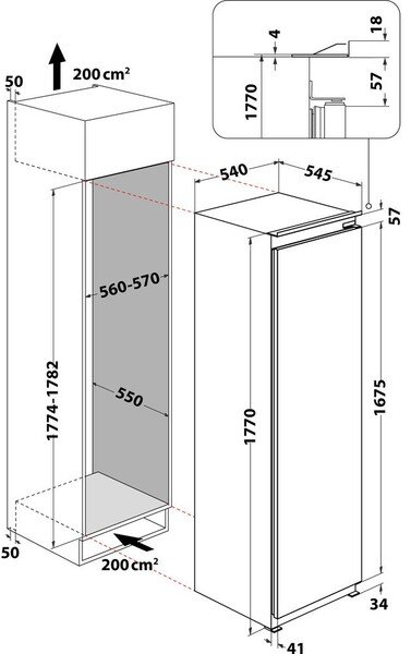 | Габарити для вбудовування | 1774x560x550 мм |