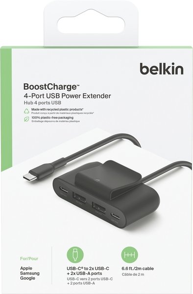USB хаб Belkin 2хUSB-C/2хUSB-A, 2м, Black (BUZ001BT2MBKB7)