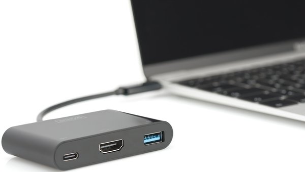 Многопортовый адаптер USB Type-C HDMI с 3 портами расширяет ваше устройство USB-C тремя дополнительными портами. Используйте порт HDMI для подключения дополнительного телевизора или монитора к ноутбуку или проведения презентации с помощью проектора. Максимально возможное разрешение — UHD (4K/30 Гц). Кроме того, адаптер имеет порт USB 3.0 для подключения внешних USB-устройств. Он также соответствует спецификации USB-BC 1.2 (зарядка аккумулятора через USB) и поэтому подходит для зарядки мобильных устройств (макс. 5 В/1,5 А). Кроме того, он оснащен портом USB-C с функцией Power Delivery (PD) 2.0 для питания вашего ноутбука при использовании адаптера. Многопортовый адаптер подходит для всех операционных систем: Windows, Mac, Google Chrome.