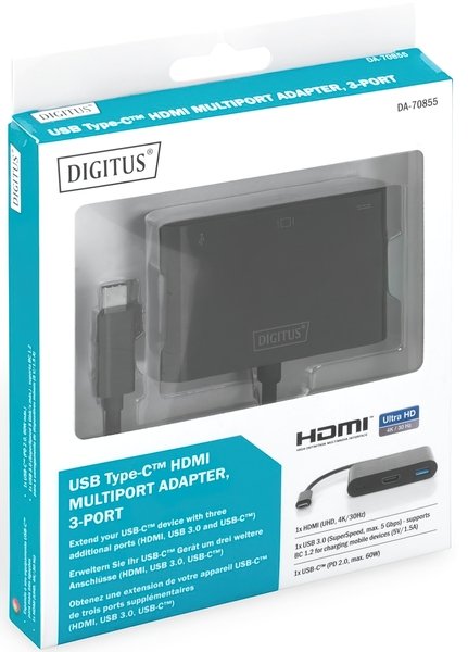 - USB хаб DIGITUS USB-C – HDMA, 2xUSB (DA-70855)