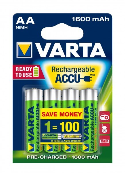 - Аккумулятор VARTA LONGLIFE ACCU AA 1600mAh BLI 4 NI-MH (56716101404)