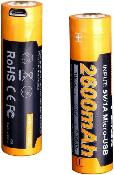 - Аккумулятор 18650 Fenix (2600 mAh) micro usb