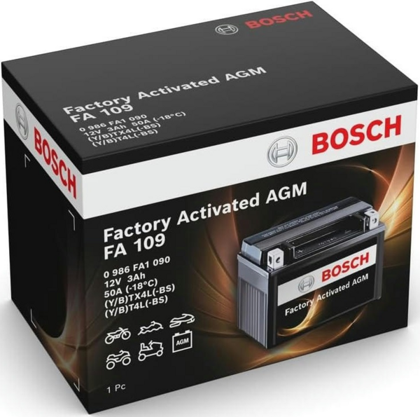 - Аккумулятор AGM Bosch 3Ah-12v (FA109), R, EN50 (0986FA1090) (52371436736)