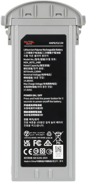 Умный аккумулятор емкостью 8070 мАч для Autel EVO Max 4T поддерживает горячую замену между полетами, чтобы сократить время простоя и максимально быстро поднять дрон в воздух.