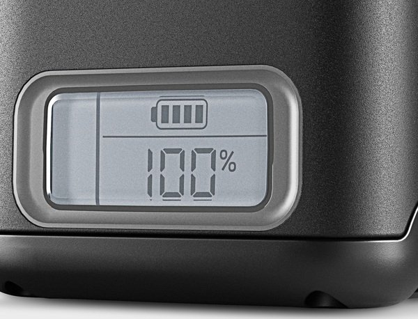 Встроенный ЖК-дисплей постоянно отображает состояние заряда, время до окончания процесса заряда и текущий запас времени работы.