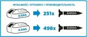 Двухскоростная дрель-шуруповерт Graphite (Графит) 58G006, работающая с аккумуляторными батареями 18 В Li-Ion GRAPHITE Energy+. Электроинструмент с плавной регулировкой частоты вращения, оснащен переключателем направления вращения. Самозажимной патрон позволяет использовать оснастку диаметром 2-13 мм. Максимальная частота вращения шпинделя на первой скорости составляет 350 оборотов в минуту, а на второй скорости - 1250. Максимальный крутящий момент составляет 35 Нм (мягкое ввинчивание) / 55 Нм (твердое ввинчивание), момент можно регулировать благодаря 19-ступенчатой муфте с дополнительной опцией сверления. Инструмент с двигателем, оснащенным электрическим тормозом и автоматической блокировкой шпинделя. Светодиод включается автоматически, освещает рабочее место. Эргономичная форма рукоятки и компактная конструкция дрели-шуруповерта обеспечивают удобную работу, в том числе и в тяжелых условиях. Рукоятка покрыта антискользящим материалом, благодаря чему электроинструмент хорошо ложиться в ладонь. Планетарная передача изготовлена из высокосортной стали.