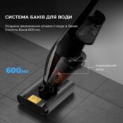 В аккумуляторный пылесос устанавливаются два контейнера для воды, один для чистой, другой для сбора грязной воды и мусора. Баки имеют встроенные датчики наполненности, которые помогут вам определить необходимость заполнения чистой водой или опустошения бака для сбора мусора и грязной воды.