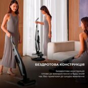 Deerma VX96W имеет современный дизайн и корпус с плавными линиями и изгибами. Удобная рукоять позволит вам убирать пол только одной рукой, ведь основная масса устройства приходится на нижнюю часть. На ручке также установлены кнопки для управления пылесосом Deerma VX96W. Баки для воды имеют фиксирующие защелки. Основная щетка имеет наклонно-поворотную конструкцию, в результате чего очень удобно промывать между ножками мебели под мебелью и можно ловко маневрировать между различными элементами интерьера на полу.
