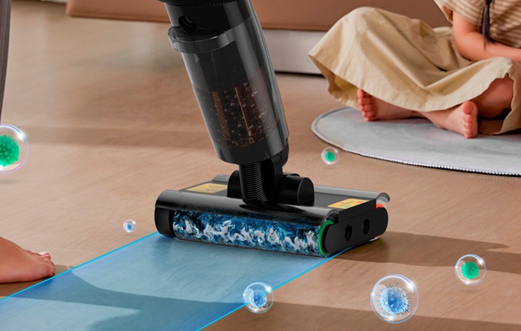 Внутри беспроводного мойщика для пола встроен электролитический стерилизатор для воды, который позволит вам избежать образования неприятного запаха, грибка, размножения бактерий или плесени внутри баков и трубопроводов пылесоса.