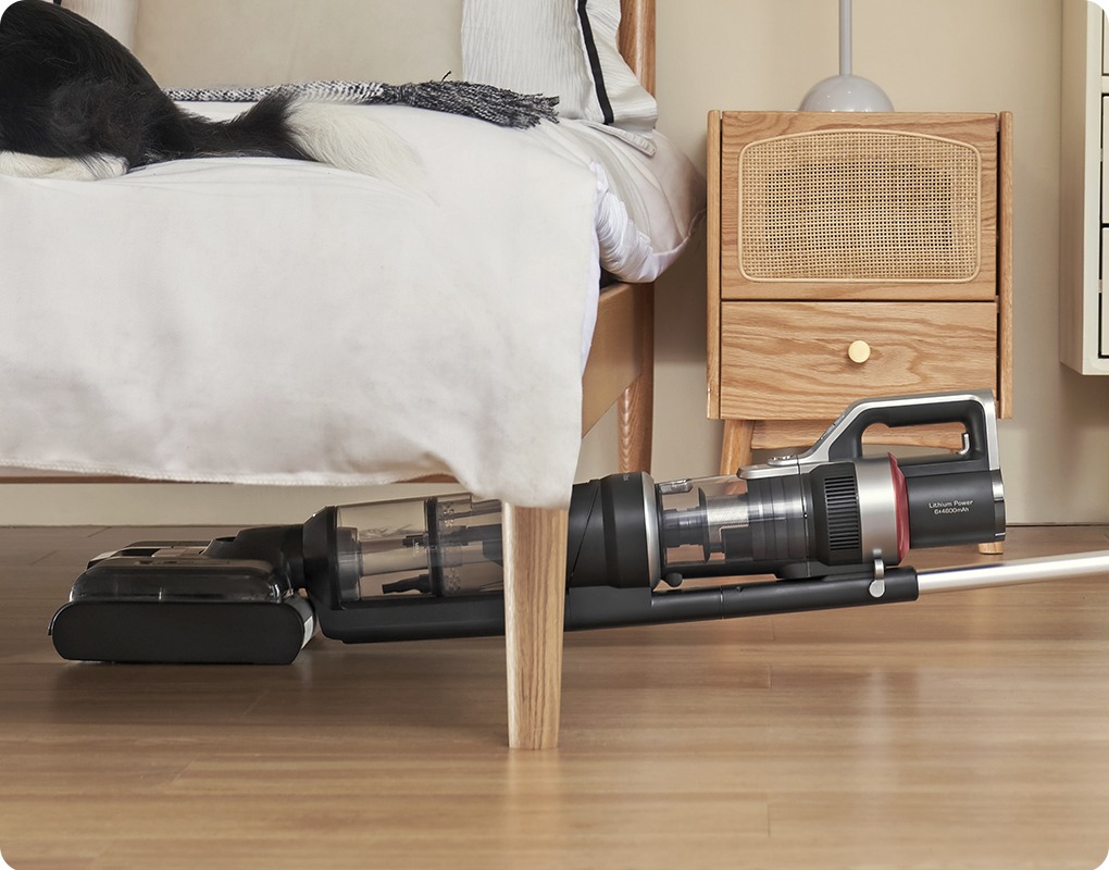 Аккумуляторный пылесос Jimmy HW11 Pro Max создан для удобной и тщательной уборки даже в самых сложных уголках вашего дома. Благодаря уникальной системе, предотвращающей обратный поток воздуха, и возможности раскладываться практически горизонтально под углом 180 градусов, он легко очищает пространство под мебелью. Теперь уборка под диванами, кроватями и другими низкими предметами мебели становится максимально простой и эффективной. Наслаждайтесь комфортом и чистотой в вашем доме без лишних усилий.