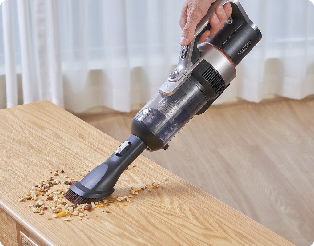 Пылесос Jimmy HW11 Pro Max легко трансформируется в компактный ручной вариант одним движением, предоставляя возможность эффективно чистить даже в самых сложных местах вашего дома. Это идеальное решение для уборки труднодоступных зон, таких как углы, узкие пространства или темные участки под мебелью, где обычный пылесос не справляется. Легкость в использовании и максимальная мобильность делают уборку удобной и эффективной, обеспечивая чистоту в каждом уголке вашего дома.