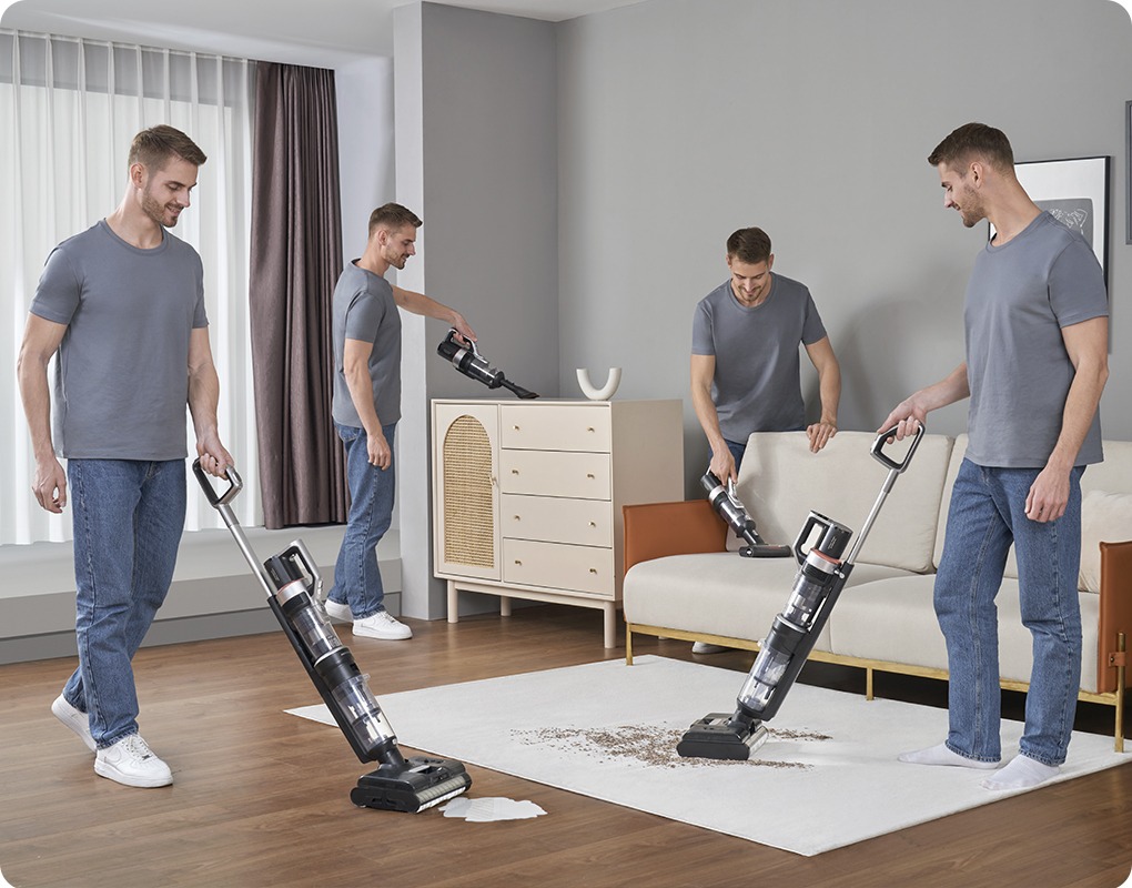 Благодаря чрезвычайно сильному всасыванию это устройство легко справится с глубокой очисткой как сухих, так и влажных загрязнений. Следы от обуви, пролитый напиток, йогурт или шерсть домашних любимцев — все это устраняется без усилий. Благодаря современным технологиям очистка становится быстрой, эффективной и максимально комфортной для вашего дома.