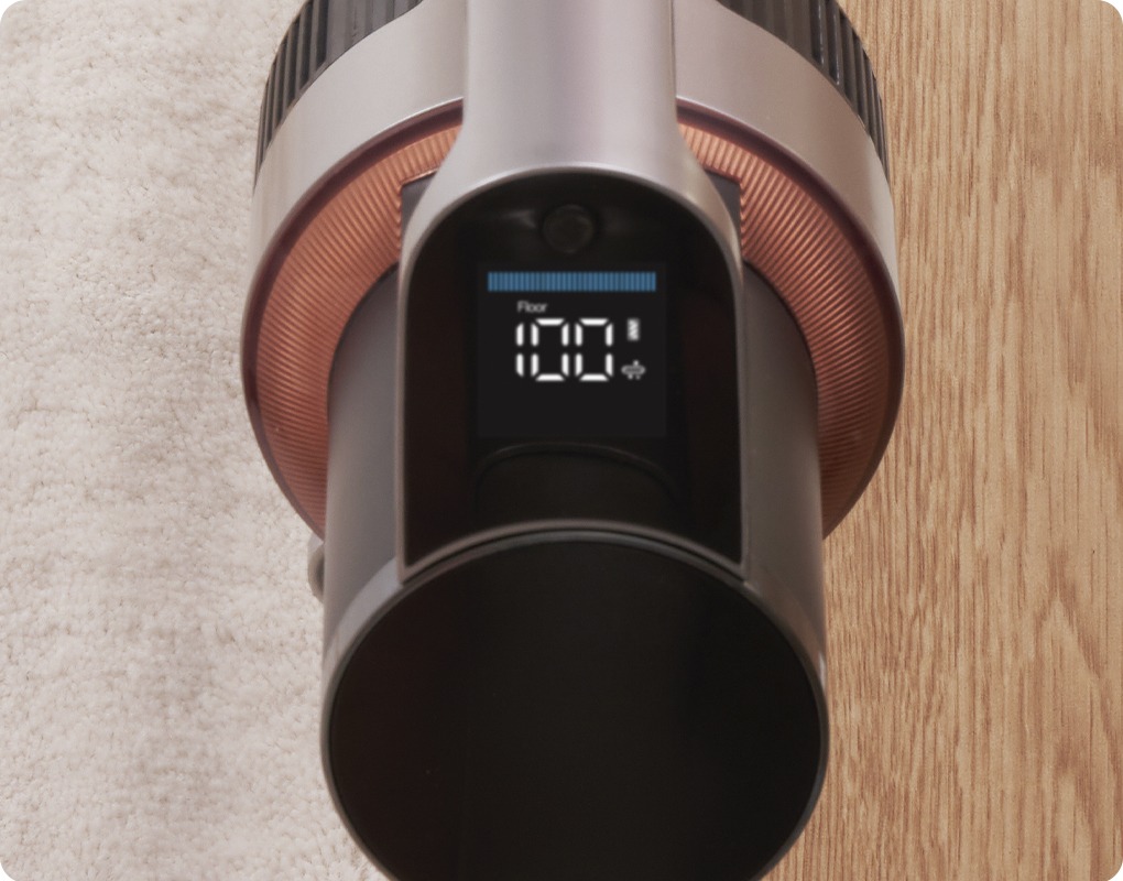 Светодиодный экран Jimmy HW11 Pro Max выводит комфорт уборки на новый уровень. Благодаря четкому отображению информации вы мгновенно получаете данные о времени работы, состоянии чистоты пола и текущем режиме устройства. Дополнительно пылесос оснащен голосовой поддержкой на пяти языках, что делает управление интуитивно понятным и помогает быстро настроить оптимальный режим уборки для вашего дома.