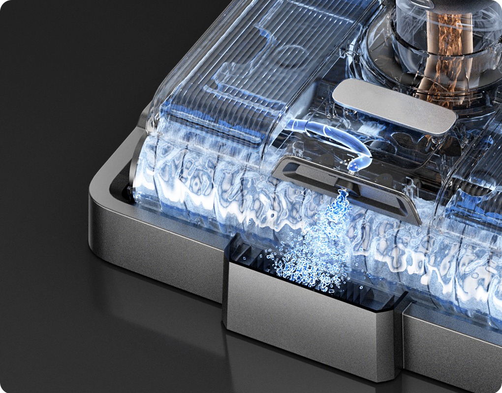 Этот пылесос оснащен усовершенствованной функцией самоочистки, что обеспечивает максимальное удобство при обслуживании. Просто поставьте устройство на базу, нажмите кнопку, и система начнет двойное вращение щетки с высокой скоростью. Это эффективно удалит грязь и пыль, которые остаются на щетке после работы. После завершения процесса очистки влажные компоненты, такие как щеточный валик, воздушный канал и резервуар для грязной воды, проходят тщательную сушку горячим воздухом. Такая функция препятствует образованию плесени и устраняет неприятные запахи, обеспечивая безупречную гигиеничность вашего пылесоса после каждого использования.
