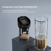 Конструкция моющего пылесоса предусматривает два отдельных бака для чистой и отработанной воды. Такое решение позволяет убирать за один подход большую площадь дома или квартиры. Также в баке для грязной отработанной воды предусмотрена система отделения твердых отходов от жидких, что позволяет быстрее и легче очистить резервуар в конце уборки. Баки имеют объем по 400 мл каждый.