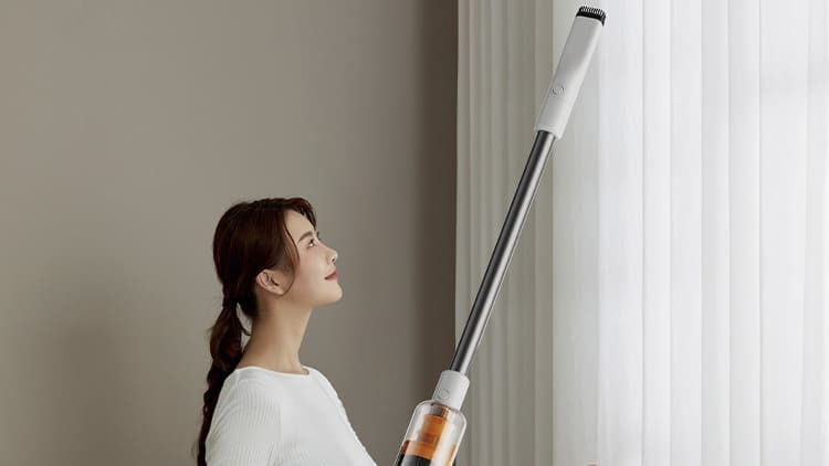 Ультралегкий дизайн пылесоса Deerma T10W обеспечивает уборку не только на полу, но и уборку в углах потолка, при этом руки не устают и не болят.