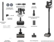 | Комплектация (возможны изменения в разных поставках) | Аккумулятор, Документация, Зарядное устройство, Микрофибра - 2 шт., Насадка - 5 шт., Настенное крепление, Пылесос, Трубка |