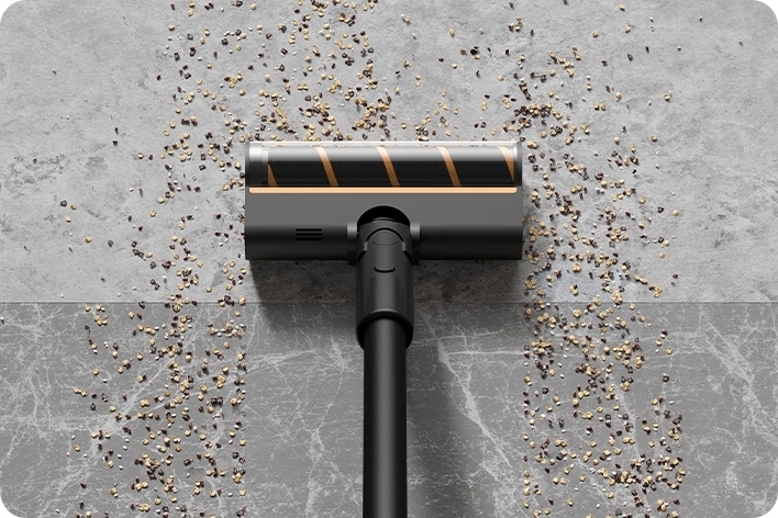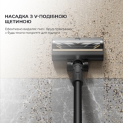 Аккумуляторный пылесос без проблем подстраивается под любое покрытие с помощью универсальной щетки. Адаптивная щетка собирает мусор еще сильнее. Ее плавающая головка адаптируется под любую поверхность и приближается к плинтусам на расстояние 7 мм. Устройство является маневренным и убирает мусор даже в углах и труднодоступных местах. Щетинки имеют V-образную форму, что позволяет легко убирать шерсть и волосы, мелкую пыль и грязь.