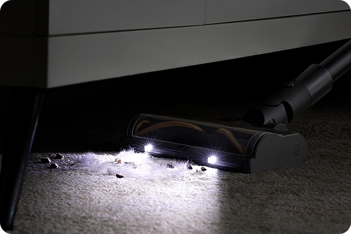 Если вы убираете в вечернее время суток, подсветка будет просто необходима. Такой функцией обладает модель Dreame R10 PRO. 2 LED-лампы, создают локальную подсветку.
