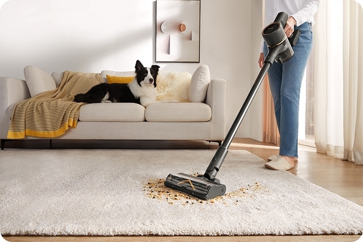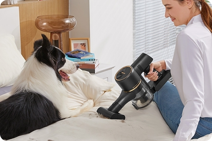 Беспроводной пылесос Dreame эффективно очищает не только пол, но и мягкую мебель, плинтусы и клавиатуру ноутбука или компьютера. Также вместе с пылесосом вы можете поддерживать чистоту в автосалоне. Если у вас дома есть домашние питомцы, предлагаем использовать специальную насадку. Она убирает шерсть и волосы, а также мелкие крошки. Моторизированная насадка в свою очередь устранит более сложные загрязнения и будет активнее убирать мусор.
