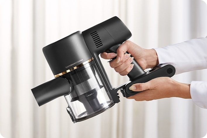 Dreame имеет стильный дизайн, поэтому точно впишется в ваш интерьер. Небольшие размеры позволяют легко убирать во всем доме и даже очищать пространство под потолком. Широкая ручка гарантирует удобный хват при уборке. При необходимости можно менять насадки, они меняются с помощью щелчка.