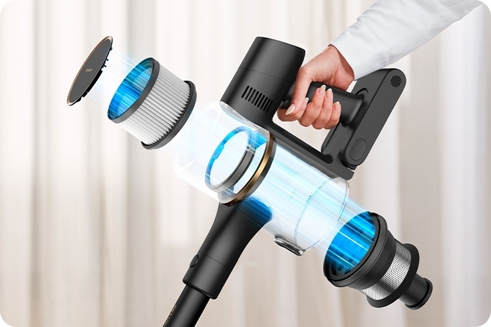 Модель оснащена многоуровневой системой фильтрации, которая способна захватывать мелкие частицы пыли и аллергены. Это делает ее идеальной для людей, страдающих аллергией. Пятиступенчатая система фильтрации - это работа циклонного фильтра, фильтра для крупного мусора и НЕРА-фильтра. Пылесос эффективно убирает мусор и крупной, и мелкой фракции, обеспечивая идеальную чистоту.