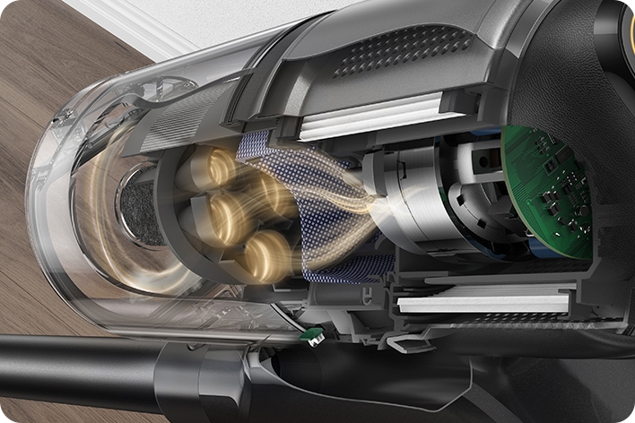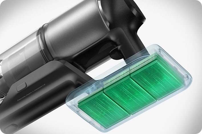 Благодаря минимальному зазору всего 7 мм между насадкой и стеной, пылесос мгновенно и с легкостью очищает даже самые труднодоступные уголки. Это обеспечивает безупречную чистоту по всему помещению, сделав уборку максимально эффективной и удобной.