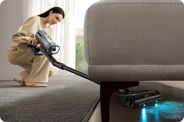 Система встроенной подсветки Blue Lights Dirty Detection в насадке подсвечивает темные места, чтобы вы могли видеть даже самые мелкие загрязнения и эффективно их удалять. Эта инновационная функция гарантирует безупречную чистоту в вашем доме.