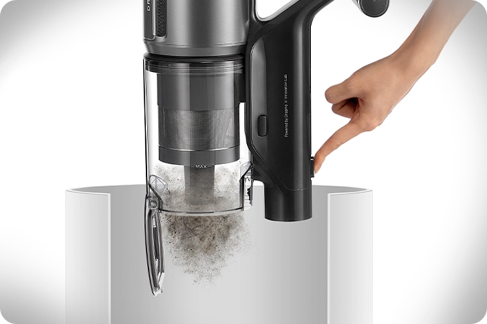 Очистка контейнера пылесоса от его содержимого стала максимально простой. Никакой чрезмерной пыли или мусора, который может случайно выпасть, больше не имеет значения, поскольку выбрасывать его легко одним движением руки, и он выпадает прямо в ведро. Объем контейнера 0,6 литра обеспечивает достаточно места для нескольких полных уборок, а прозрачные стенки позволяют постоянно контролировать, насколько он заполнен.