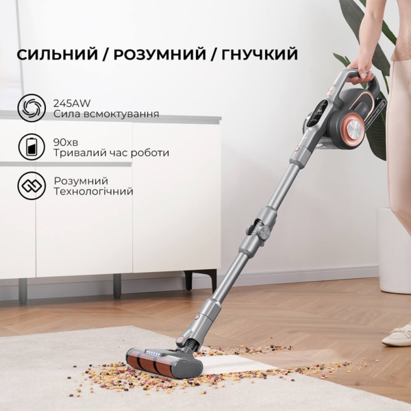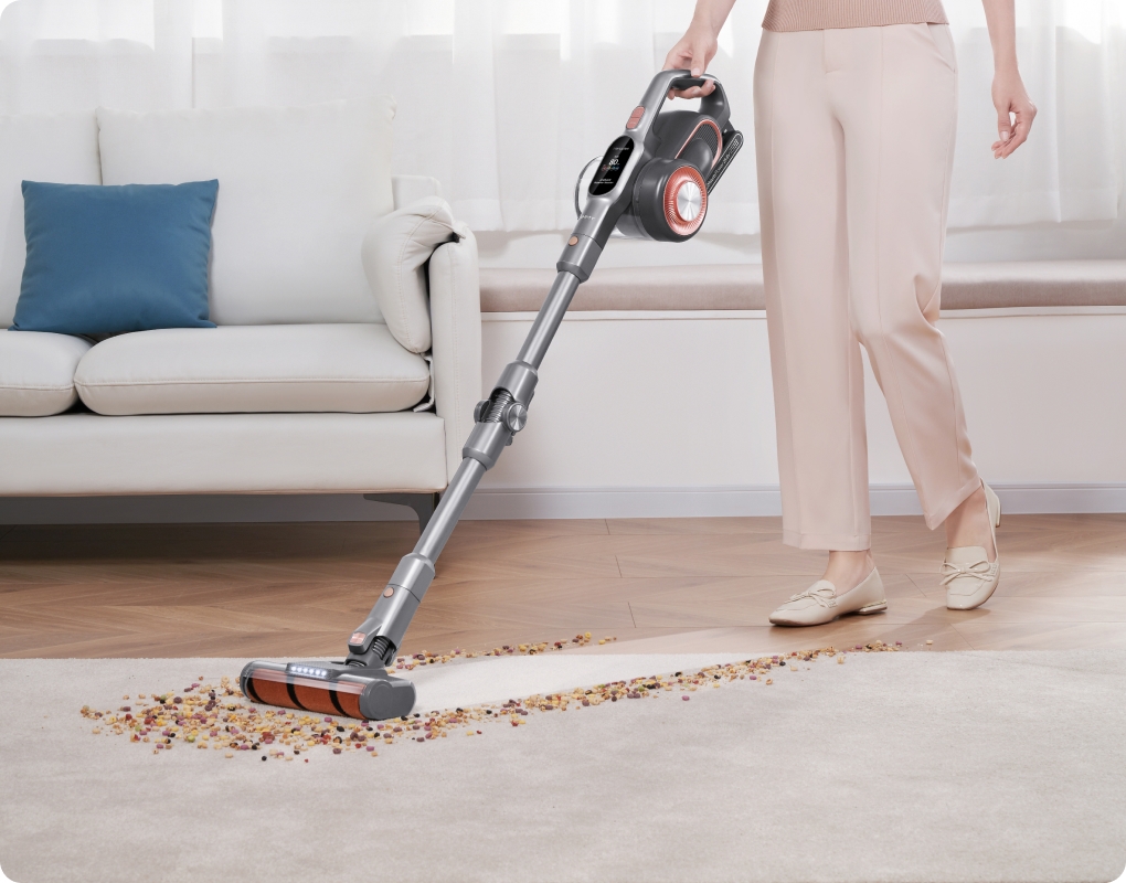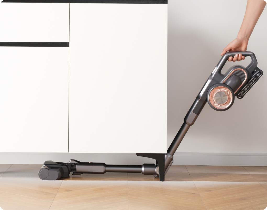 Одной из частых проблем во время уборки является необходимость нагибаться, чтобы пропылесосить под диваном, креслом или другой мебелью на ножках. С пылесосом Jimmy вы сможете делать такую же тщательную уборку, но не сгибая при этом спину и не становясь на колени. После уборки не будет чувства усталости и изможденности, все сложности уборки пылесос берет на себя.