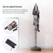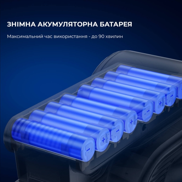 Аккумуляторная батарея со съемной конструкцией питает энергосистему и цифровой блок управления агрегата и позволяет проводить уборку абсолютно без использования проводов. Батарейный блок имеет достаточную емкость для работы пылесоса до 1,5 часа от одного полного заряда аккумулятора. Убирайте сразу во всей квартире за один подход без перерывов и подзарядки. В случае естественного износа и деградации аккумулятора его можно легко заменить на новый без необходимости разбирать пылесос или нести его в сервис.