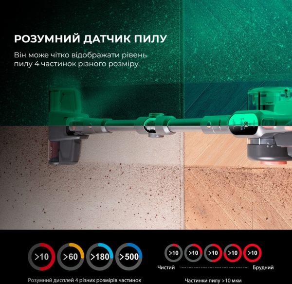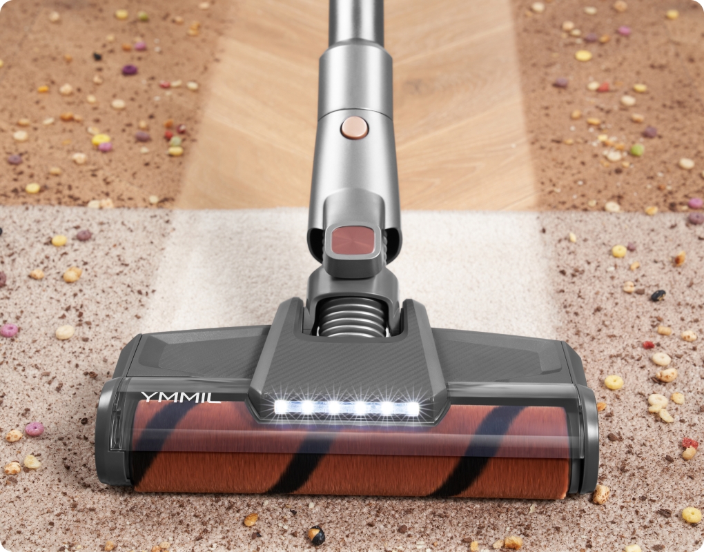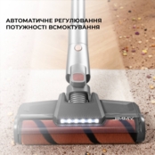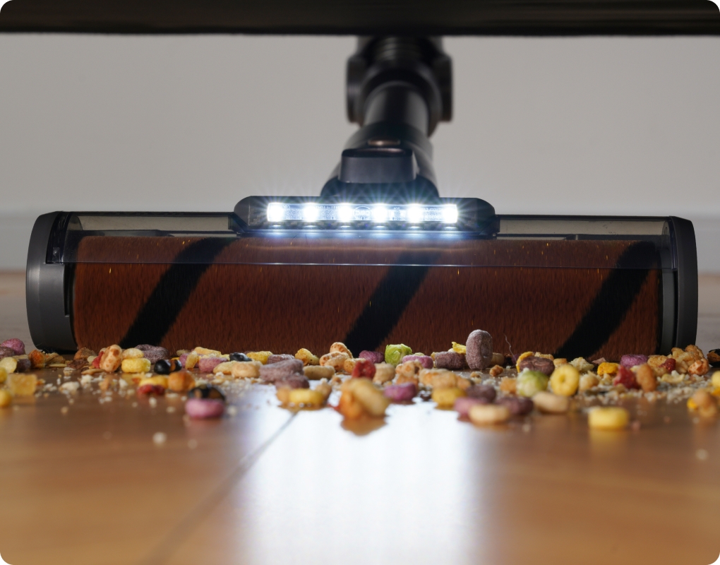 Комплектная моторизированная щетка для уборки имеет на борту специальный датчик для обнаружения пыли на напольном покрытии. Таким образом можно сразу тщательно убрать весь мусор с пола, не оставив ничего на полу. Светодиоды подсвечивают пыль и пылинки на полу, за счет чего их легче увидеть невооруженным глазом и ловко маневрируя пылесосом поместить их в бак для мусора.
