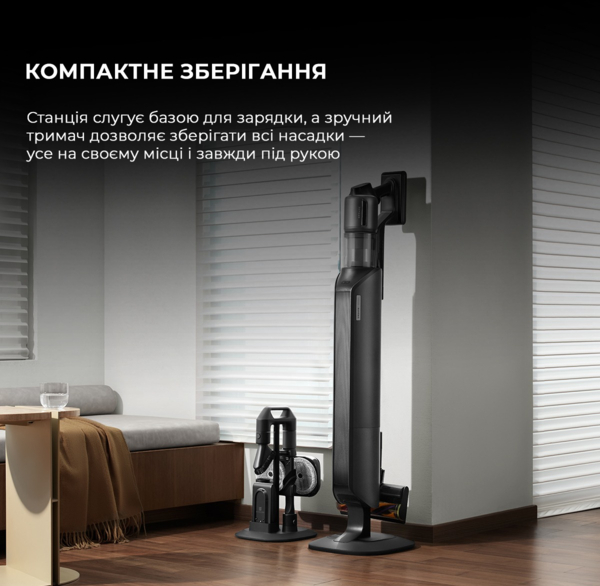 С легкостью храните запасные насадки на креплении для аксессуаров, станция обеспечивает легкий доступ и организованность Вашего места, что повышает удобство и делает инструменты для чистки легкодоступными, упрощая обслуживание и оптимизируя процедуру уборки.