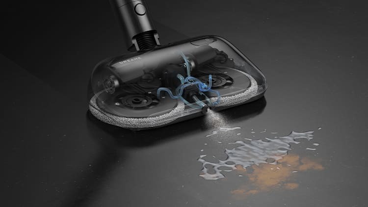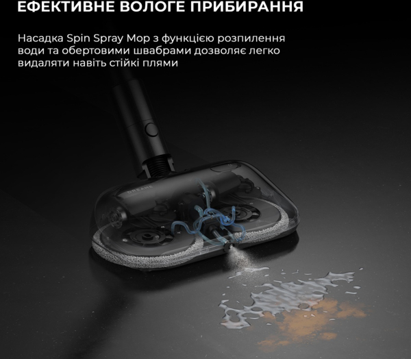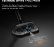 Насадка швабра Spin Spray Mop оснащена функцией распыления воды, что облегчает предварительное смачивание пятен и грязи для повышения эффективности уборки, а ее высокоскоростное отжимание позволяет без усилий удалять стойкие пятна, которые могут представлять проблему для пылесоса, например, следы домашних животных и пятна от кофе.