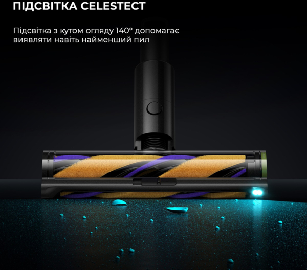 Аккумуляторный пылесос Dreame оснащен подсветкой во время работы, что расширяет зону действия Celeste Light для улучшенного процесса уборки пыли. Насадка omni-brush сочетает в себе функции мягкой роликовой щетки и многофункциональной щетки для улучшения очистки. Конструкция Anti-Tangle уменьшает запутывание волос, а регулируемый входной патрубок справляется с крупными частицами Clean-to-Edge решает проблему уборки в ограниченном пространстве.