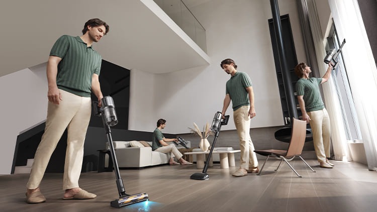 Прикрепите насадку-щетку с подсветкой и протестируйте ее в режиме Eco с двумя полностью заряженными аккумуляторами. Полностью заряженного аккумуляторного пылесоса Dreame Z40 Station хватает на уборку примерно 410 м2.